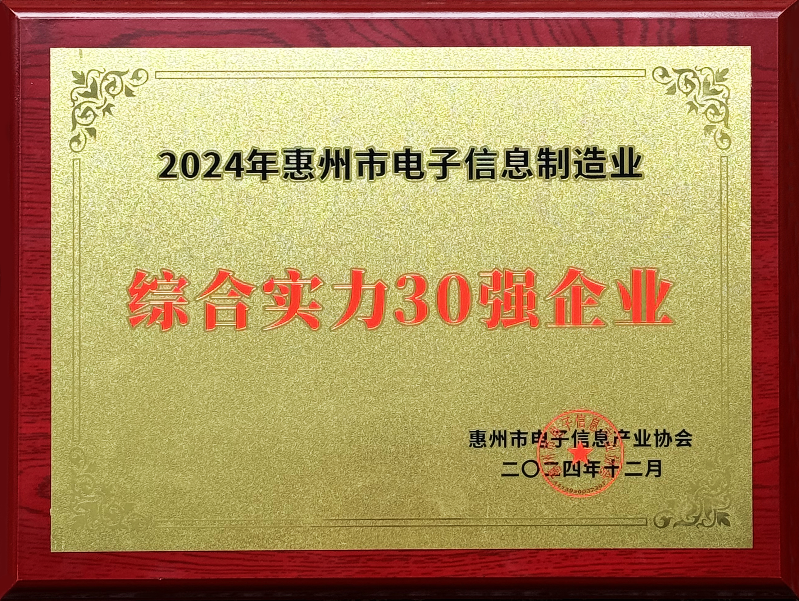 九游ninegame科技荣获“2024年惠州市电子信息制造业综合实力30强企业”称号