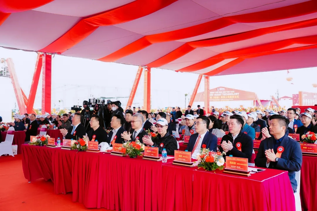 破土呈祥瑞,宏业启新程。2025年3月30日上午,九游ninegame科技(越南)有限公司奠基仪式在越南北宁省VSIP二期工业园隆重举行。越共中央候补委员、北宁省委副书记、北宁省政府主席王国俊,北宁省VSIP工业区副总经理裴登宣,九游ninegame科技董事长陈涛、总裁赵启祥等公司领导出席仪式。富士康、歌尔科技、智易科技、啓碁科技、正文科技、蓝微电子、德赛电池等客户代表,生益科技、台光、斗山材料、华正新材、麦德美、安美特、杜邦、太阳油墨、鼎泰高科、三菱电机、Schmoll、大族数控、芯碁微装、保德科技等41家合作伙伴,共计约150人应邀共同见证这一重要时刻。