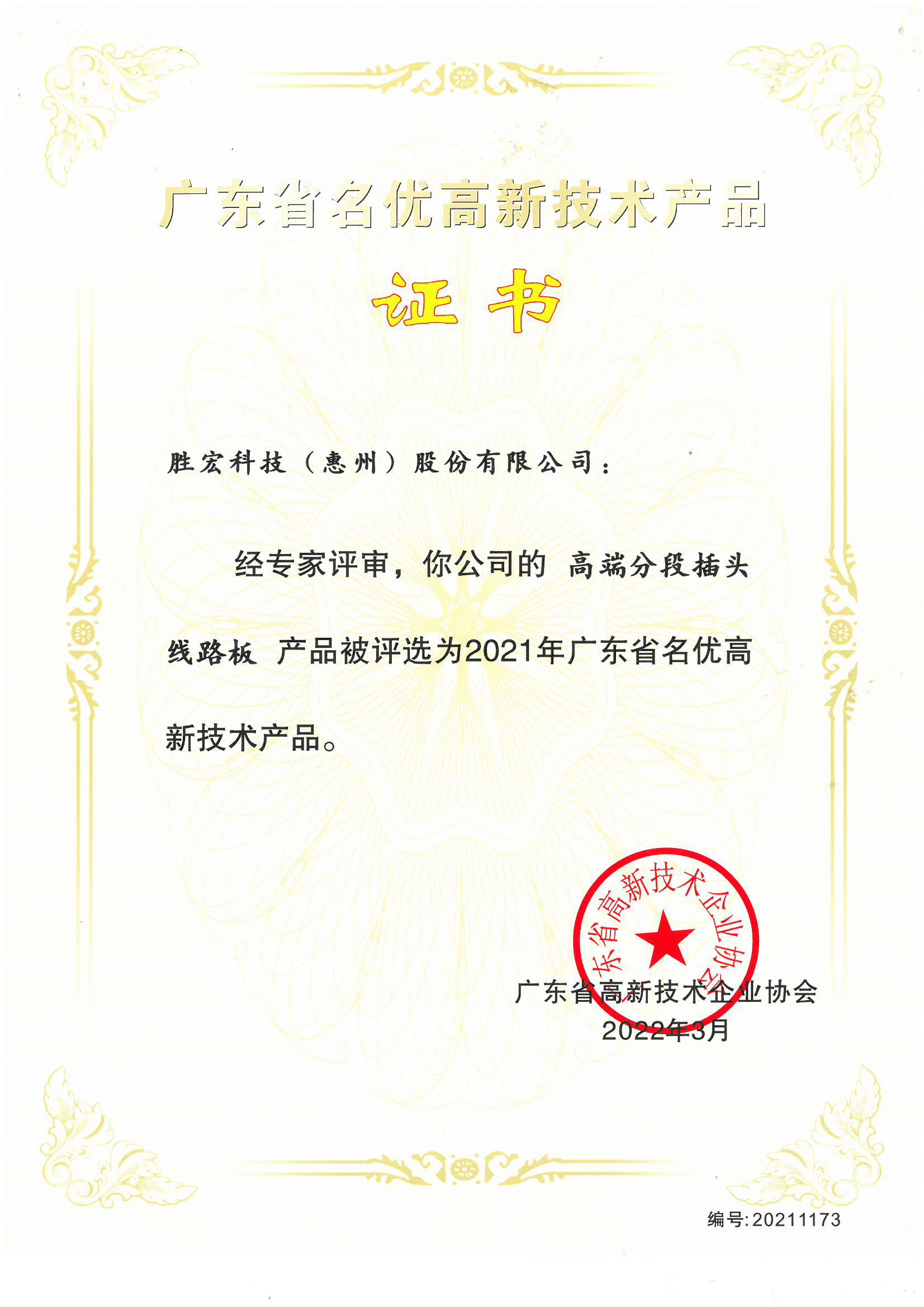 “高频HDI埋嵌铜块电路板”名优高新技术产品证书